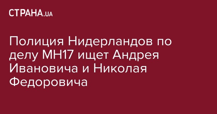 Международная группа следователей в настоящий момент проверяет информацию относительно двух фигурантов дела о крушении малайзийского Boeing на востоке Украины в июле 2014 года, сообщила полиция Нидерландов. Согласно сайту, речь идет о неких Андрее Ивановиче с позывным "Орион" и Николае Федоровиче с позывным "Дельфин".