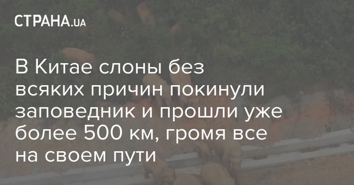 В Китае слоны без всяких причин покинули заповедник и прошли уже более 500 км, громя все на своем пути