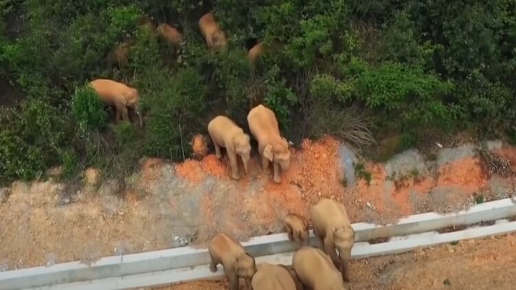 В Китае, в провинции Юньнань стадо диких азиатских слонов весной покинули заповедник и начали миграцию на север. Животные прошли уже более 500 километров, в начале они шли по малонаселенной местности, а сейчас дошли до столицы провинции - Куньмина.