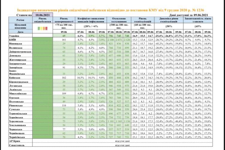 Вся Украина в "зеленой" зоне. Уровень заболеваемости превышен в пяти областях. Инфографика