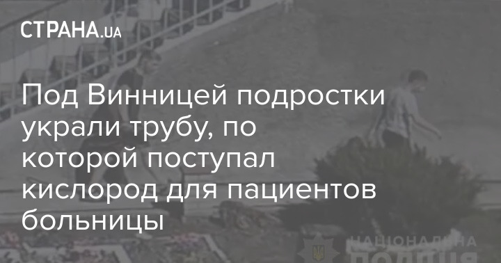 В Винницкой области двое подростков украли из здания больницы трубу, по которой к аппаратам ИВЛ поступал кислород для пациентов. Труба в момент кражи не находилась под давлением кислорода, поэтому никто не пострадал.