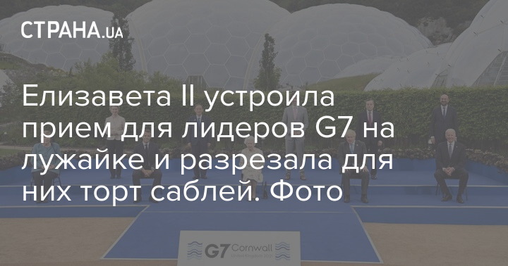 Британская монархиня общалась с высокопоставленными гостями на лужайке и угощала их большим тортом. Также Елизавета сделала общее фото с лидерами G7.