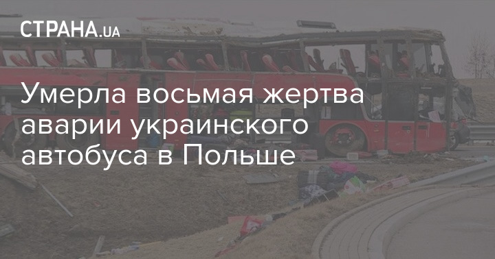 Восьмая жертва аварии украинского рейсового автобуса, которая произошла в Подкарпатском воеводстве в Польше в ночь с 5 на 6 марта, умерла в Украине.