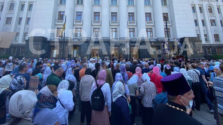 Как сообщил корреспондент "Страны", у стен ОП собралось такое количество верующих, что они заполнили все пространство на данном участке ул.Банковой.