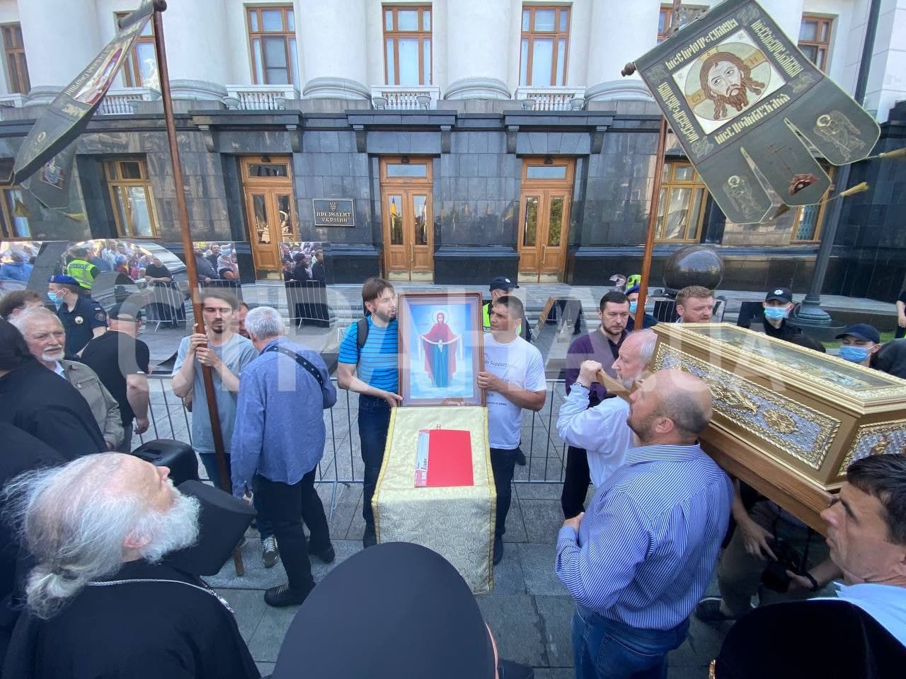 Верующие передали в Раду законопроекты об отмене дискриминации УПЦ и молятся у Офиса президента