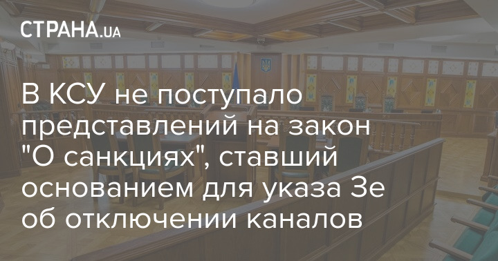 В Конституционный суд Украины не поступало представлений или жалоб касаемо соответствия Конституции Украины закона "О санкциях" от 14 августа 2014 года, на основании которого президент Владимир Зеленский издал в феврале указ о вступлении в силу решения СНБО про санкции против нардепа Тараса Козака и отключении от вещания трех оппозиционных каналов - "112 Украина", NewsOne и Zik.