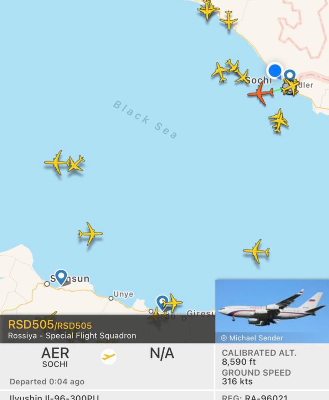 12:05 Скрин борта российского президента на Flightradar. Видно, что вылетел из Сочи.