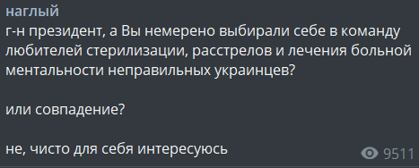 "Г-н президент, а Вы немерено выбирали себе в команду любителей стерилизации, расстрелов и лечения больной ментальности неправильных украинцев?