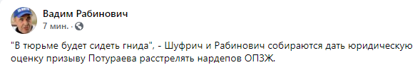 Позже Рабинович опубликовал у себя в Facebook статус о том, что Потураев будет сидеть в тюрьме.
