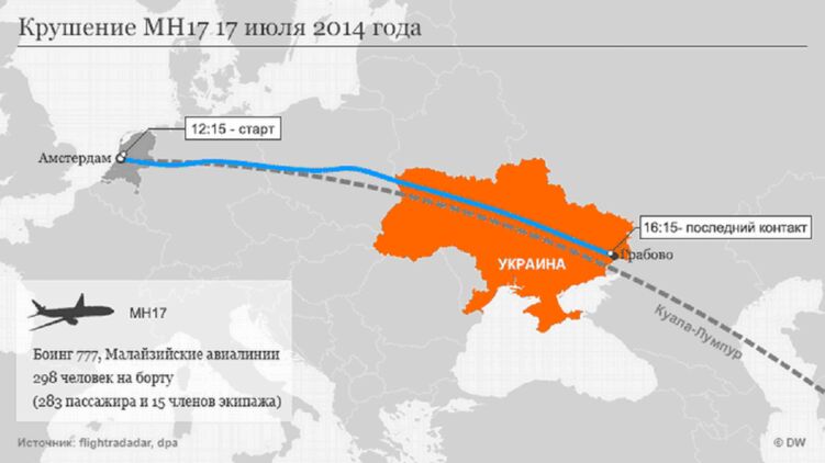 Напомним, катастрофа Boeing 777 малайзийской авиакомпании произошла 17 июля 2014 года в 16.20 по киевскому времени. Пассажирский лайнер, совершавший рейс MH17 из Амстердама в Куала-Лумпур, был сбит ракетой класса "земля-воздух". Никто из 298 человек на борту самолета не выжил.