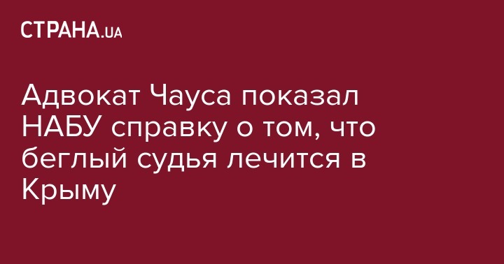 Глава Специальной антикоррупционной прокуратуры Назар Холодницкий рассказал об информации, которая есть в НАБУ о местопребывании скандального судьи Николая Чауса. Адвокат подал данные, что его подзащитный лечится в Крыму, передает телеканал "112 Украина".