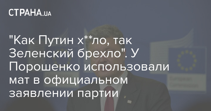 "Как Путин х**ло, так Зеленский брехло". У Порошенко использовали мат в официальном заявлении партии