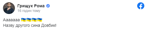 Назову второго сына Довбик!", - написал Грищук у себя в Facebook.