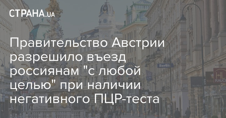 Правительство Австрии разрешило въезд россиянам "с любой целью" при наличии негативного ПЦР-теста