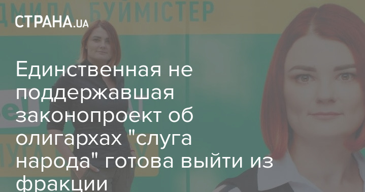 Единственным народным депутатом от фракции "Слуга народа", который не поддержал законопроект об олигарха, принятый 1 июля за основу, стала Людмила Буймистром. После этого она заявила о готовности выйти из фракции.