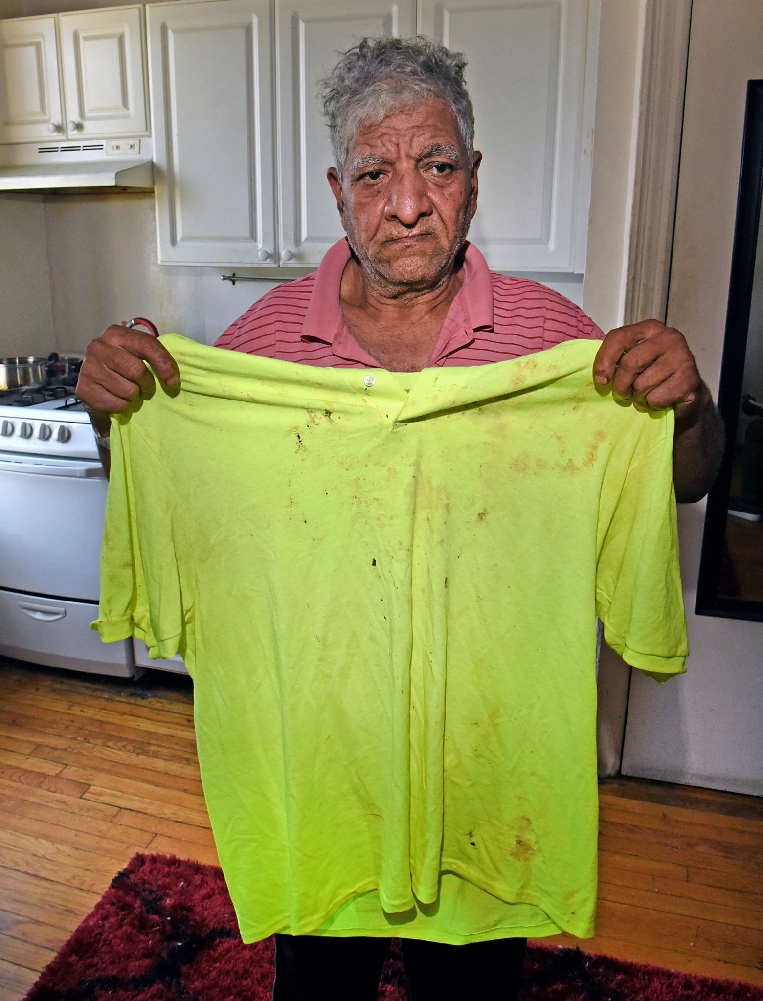 В какой-то момент к нему подошла женщина и сорвала с его тележки американский флаг США. По словам продавца, она потребовала, чтобы он заменил флаг США радужным, однако он отказался. После этого толпа накинулась на пенсионера. Ему пробили голову, сломали нос и брызнули острым соусом в глаза.