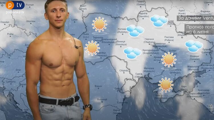 На кабельном телеканале poltavske.tv использовали уже довольно старую идею раздеть ведущих прогноза погоды. Однако если на других каналах обычно ставят перед камерами раздетых девушек, то полтавчане решили показать по всей красе молодого человека.