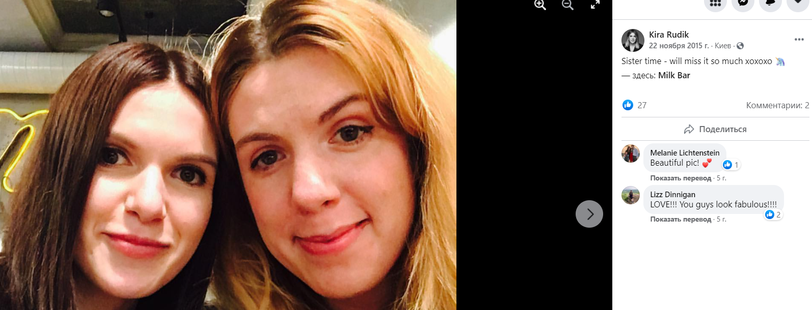 Также в соцсетях у нее есть фото сестры, датированное 2015-м годом. Отчет о встрече с ней Кира написала на английском языке (хотя обычно в то время писала на русском), а комментаторы поста оказались исключительно из США.