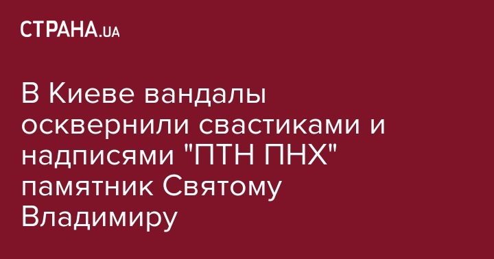 В Киеве вандалы осквернили свастиками и надписями "ПТН ПНХ" памятник Святому Владимиру