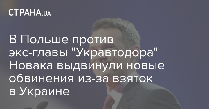 Против бывшего руководителя "Укравтодора" Славомира Новака в Польше выдвинули новое обвинение. Его подозревают в получении взяток на сумму 315 тысяч евро при реализации публичных заказов на строительство дорог в Украине.