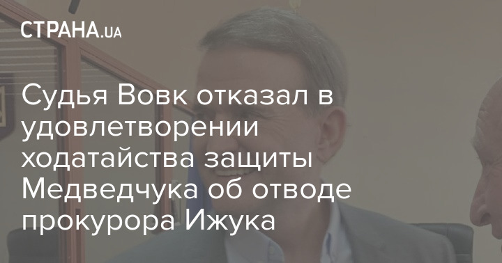 Судья Сергей Вовк отказал в удовлетворении ходатайства защиты народного депутата "Оппозиционной платформы - За жизнь" Виктора Медведчука об отводе прокурора Руслана Ижука.