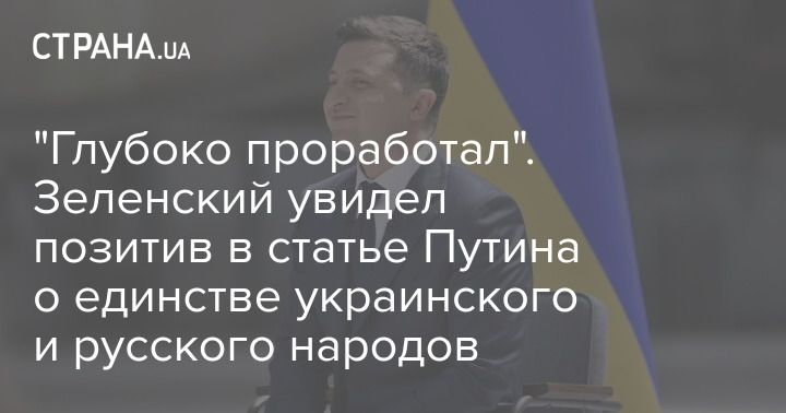 "Глубоко проработал". Зеленский увидел позитив в статье Путина о единстве украинского и русского народов