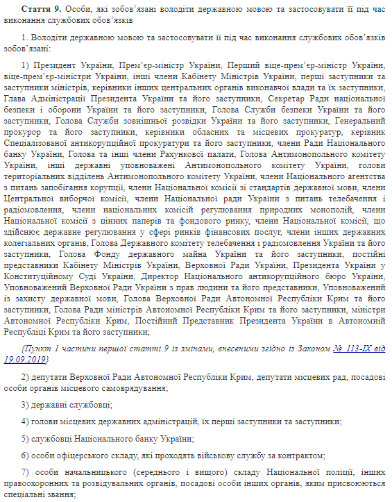 Все, кто претендует на занятие государственных должностей или выборных позиций (кроме народных депутатов), обязаны подтвердить свое знание украинского языка.