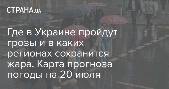 Во вторник, 20 июля, во многих регионах Украины спадет аномальная жара. При этом в большинстве областей пройдут дожди. В западных, северных, центральных и южных регионах ожидаются грозы.
