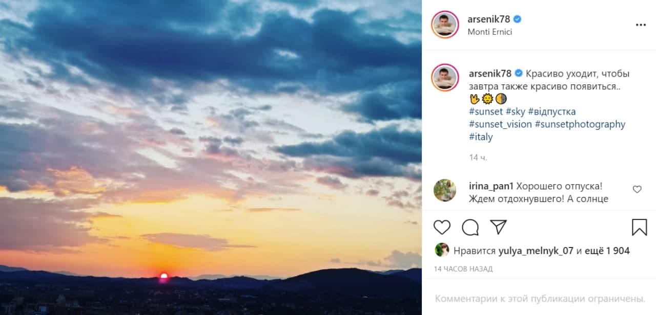 Снимок заката с необычной подписью экс-министр опубликовал на своей странице в Instagram