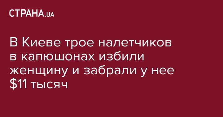 В Киеве трое налетчиков в капюшонах избили женщину и забрали у нее $11 тысяч