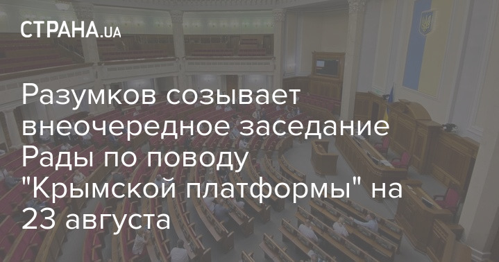 Спикер парламента Дмитрий Разумков планирует созвать внеочередное заседание Верховной Рады по поводу "крымской платформы" на 23 августа.
