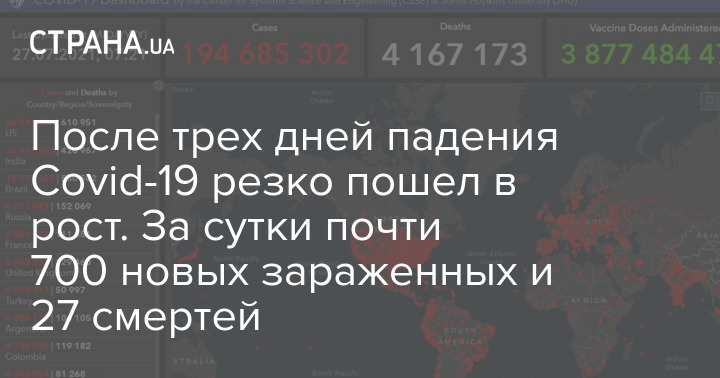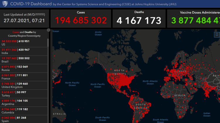 По данным на 27 июля, число зараженных на Земле приближается к 195 миллионам, фото: arcgis.com