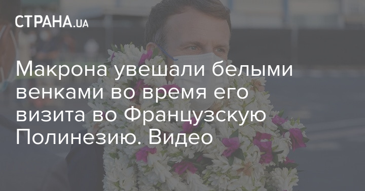 На видео, снятом по прибытии французского лидера в аэропорт, показано, как на его шею по местной традиции вешают один венок за другим. Спустя какое-то время президент Франции появляется в кадре почти полностью облаченный в белые цветы.