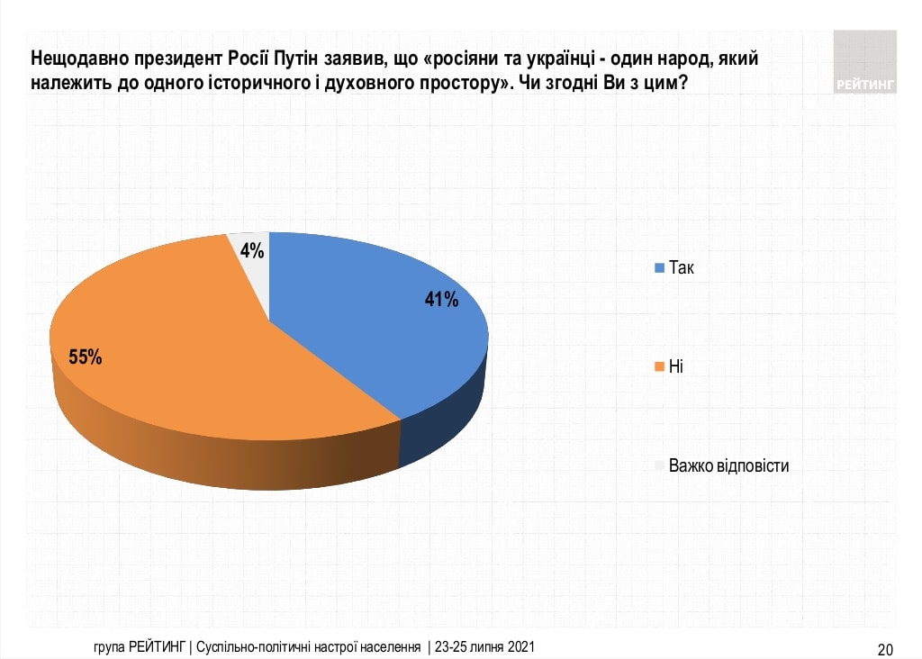 С утверждением Владимира Путина о том, что украинцы и русские – один и тот же народ, внезапно согласился 41% опрошенных.