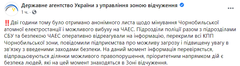 Об этом сообщила пресс служба государственного специализированного предприятия "ЧАЭС" в Фейсбуке.