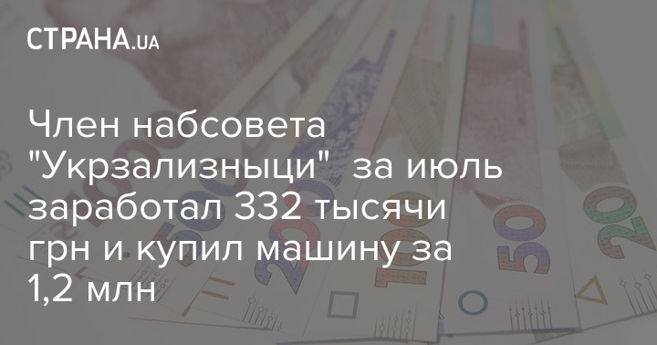 Член набсовета "Укрзализныци" за июль заработал 332 тысячи грн и купил машину за 1,2 млн
