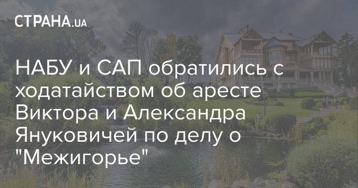 В Высший антикоррупционный суд поступило ходатайство от Национального антикоррупционного бюро Украины (НАБУ) и Специализированной антикоррупционной прокуратуры (САП) об избрании меры пресечения бывшему президенту Виктору Януковичу и его сыну Александру. Антикоррупционные органы требуют для них содержания под стражей.