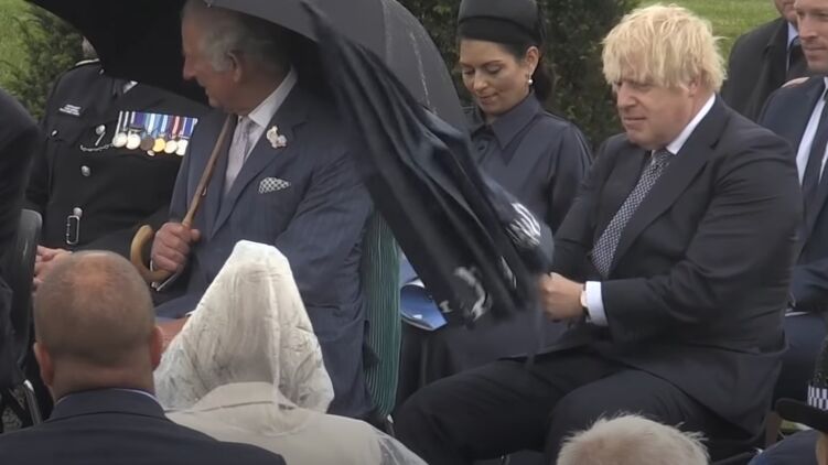 Премьер-министр Британии Борис Джонсон вместе с принцем Уэльским Чарльзом пришел на открытие мемориала погибшим правоохранителям, что обернулось для него целым испытанием из-за проблемного зонта.