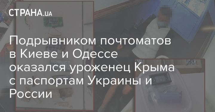 Мужчину, который подорвал почтоматы в Киеве, а потом и в Одессе, правоохранители задержали в Черновцах. Им оказался 32-летний уроженец Крыма, у которого имеется два паспорта - украинский и российский.