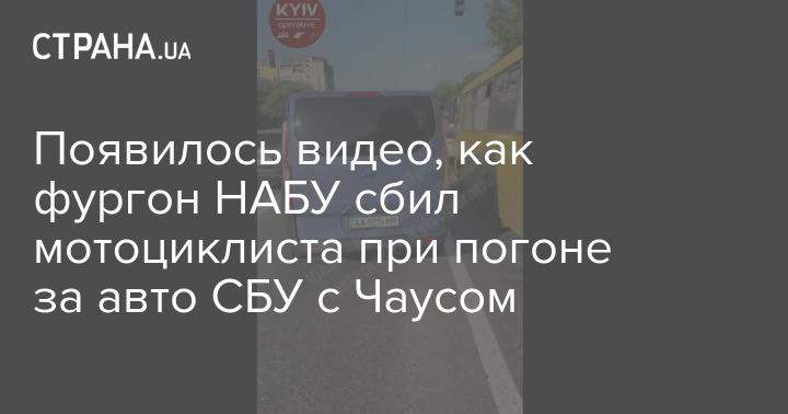 Появилось видео, как фургон НАБУ сбил мотоциклиста при погоне за авто СБУ с Чаусом