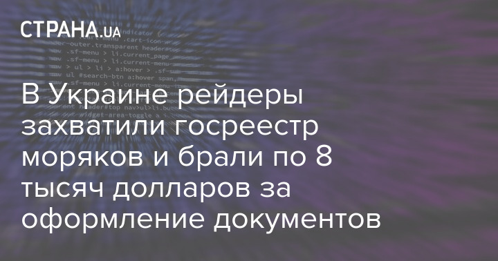 В Украине Государственный реестр моряков захватили рейдеры. Они использовали его, чтобы незаконно оформлять разрешительные документы для моряков, а деньги присваивали себе. СБУ разоблачила схему и вернула реестр Министерству инфраструктуры.