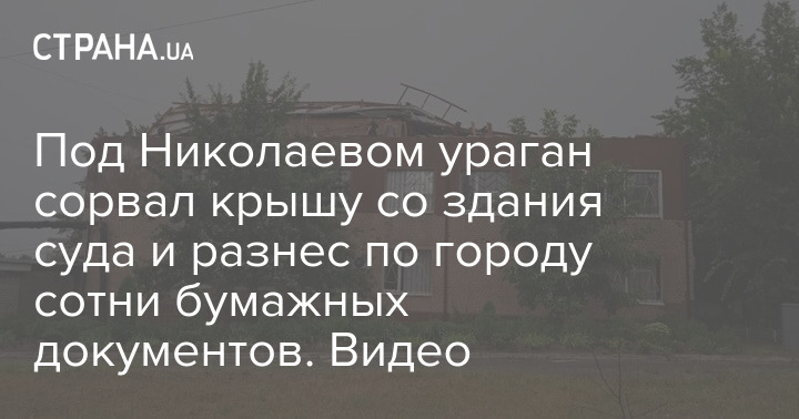 Под Николаевом ураган сорвал крышу со здания суда и разнес по городу сотни бумажных документов. Видео