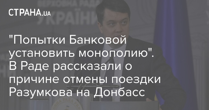 В отмене визита главы Верховной Рады Дмитрия Разумкова в зону ООС на Донбассе усматривается попытка Банковой установить монополию президента на общение с украинскими защитниками. Такое мнение "Стране" высказал источник в парламенте.