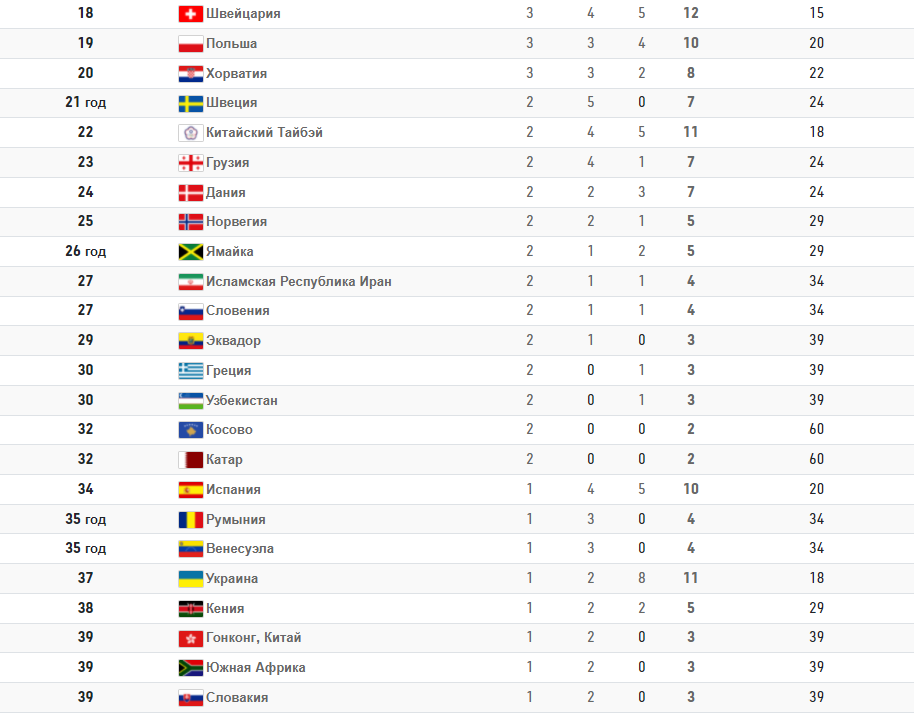 После сегодняшнего олимпийского дня и завоевания сразу четырех наград (золото, серебро и две бронзы) Украина поднялась сразу на 24 ступени в общем медальном зачете - с 61-й на 37-ю ступень. Об этом свидетельствуют данные официального сайта Олимпиады-2020.