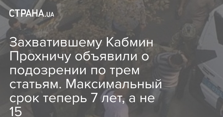 Прохнича, по данным правоохранителей, подозревают в захвате госздания (ст.341 УК Украины), незаконном обращении с оружием (ч.1 ст.263) и незаконном лишении свободы (ст.146). Санкция по первой из них предусматривает наказание до пяти лет, второй - до семи лет, а третьей - до пяти лет лишения свободы.