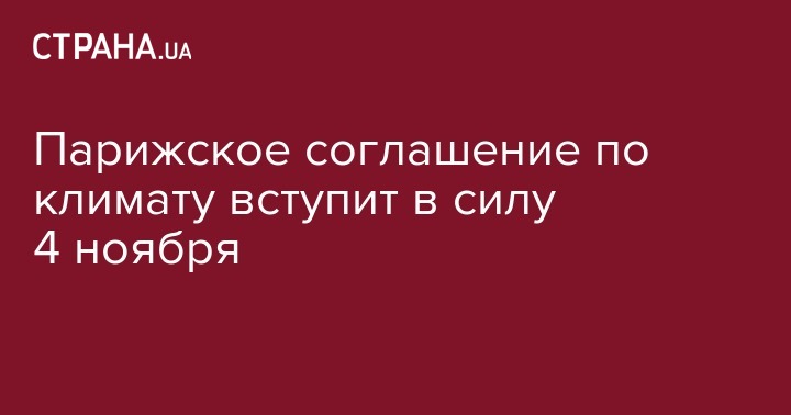 Соглашение по климату вступит в силу 4 ноября 2016 года. Это стало возможным, после того как его ратифицировали в Германии и Франции, а также в сентябре к нему присоединились США и Китай.