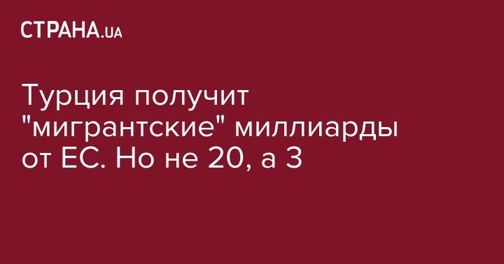 Напомним, что аппетиты у турков были намного большие. они требовали от ЕС более 20 млрд. евро на решение проблемы с мигрантами, однако согласия от европейцев пока не получили.