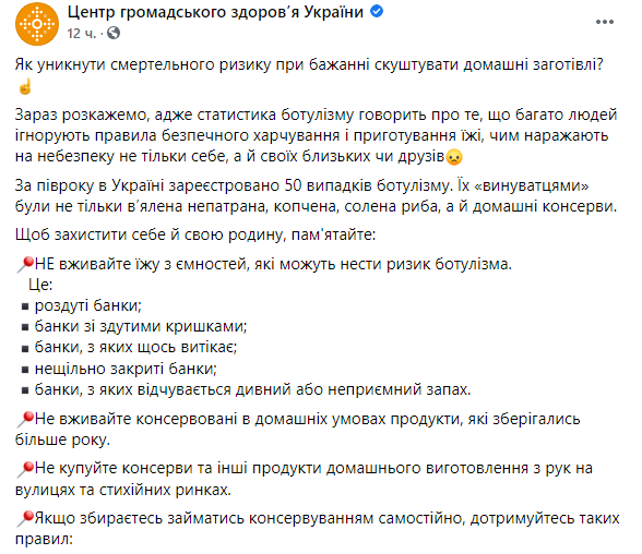 Также напомним, сколько украинцев заболели ботулизмом и умерли от него в этом году