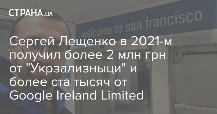 Сергей Лещенко в 2021-м получил более 2 млн грн от "Укрзализныци" и более ста тысяч от Google Ireland Limited