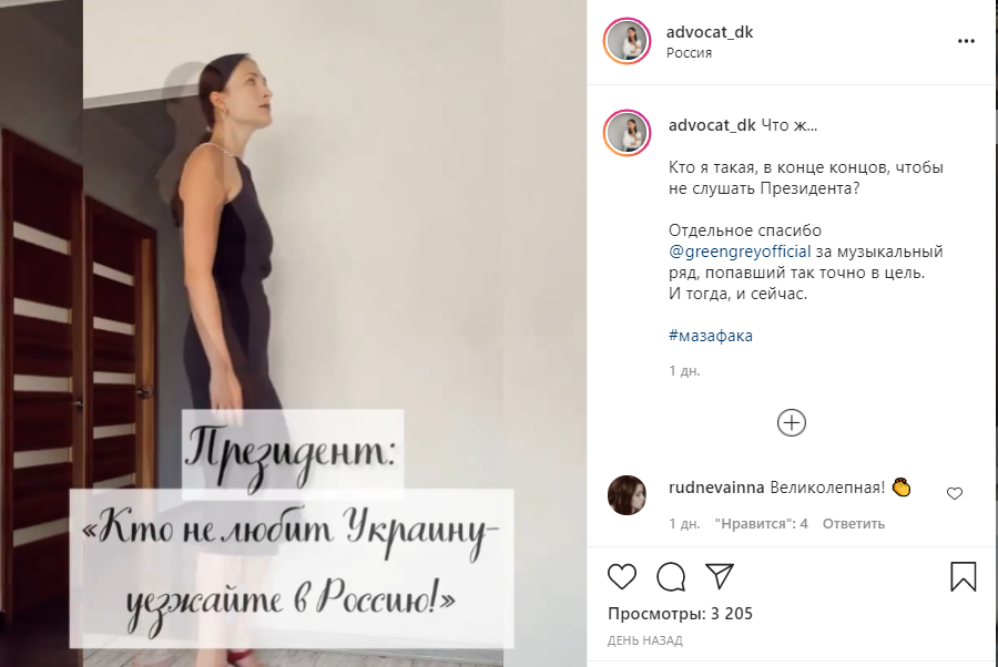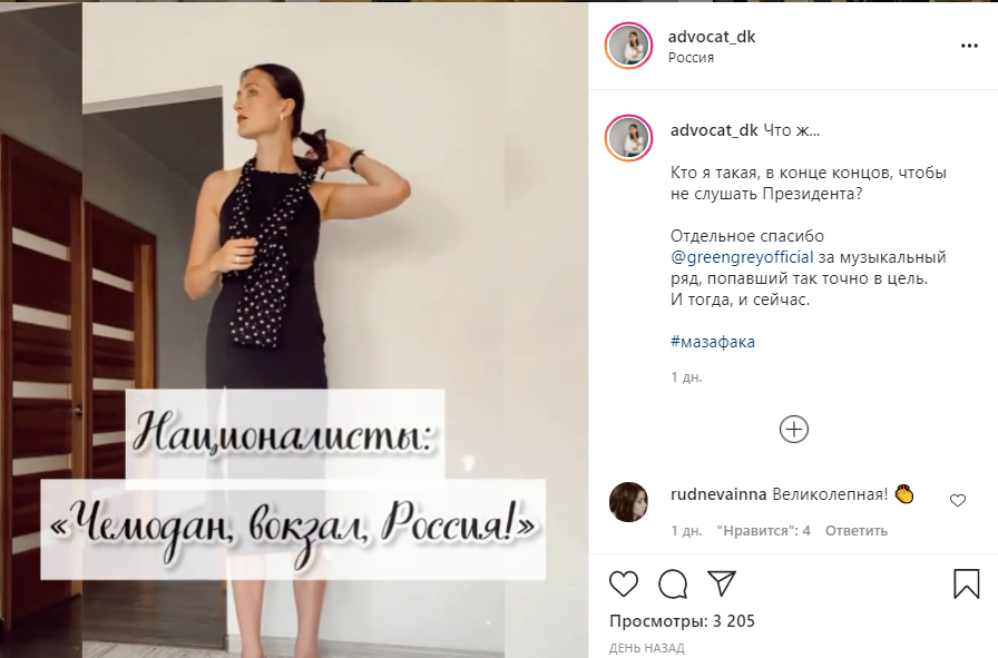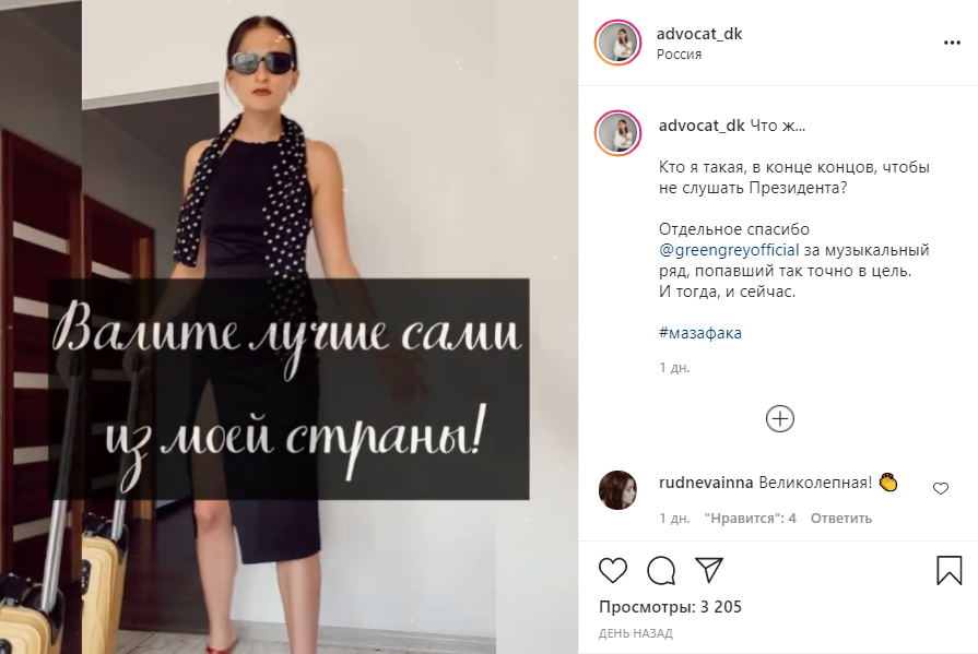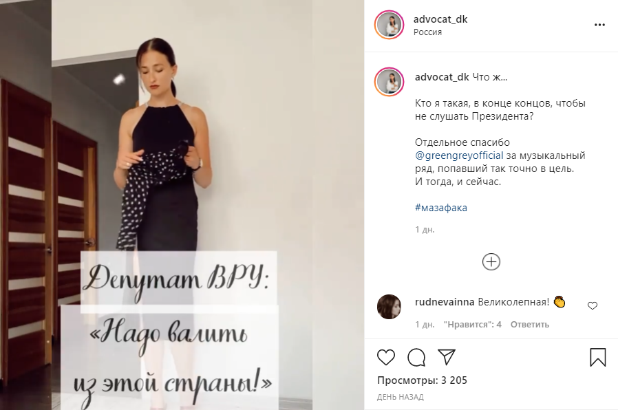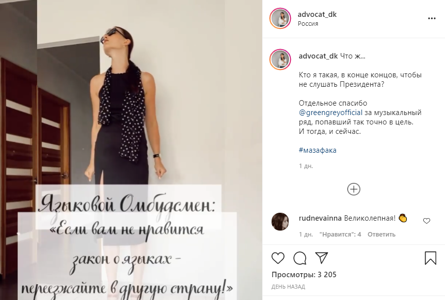 Ролик адвокат опубликовала в своем микро-блоге в Instagram.